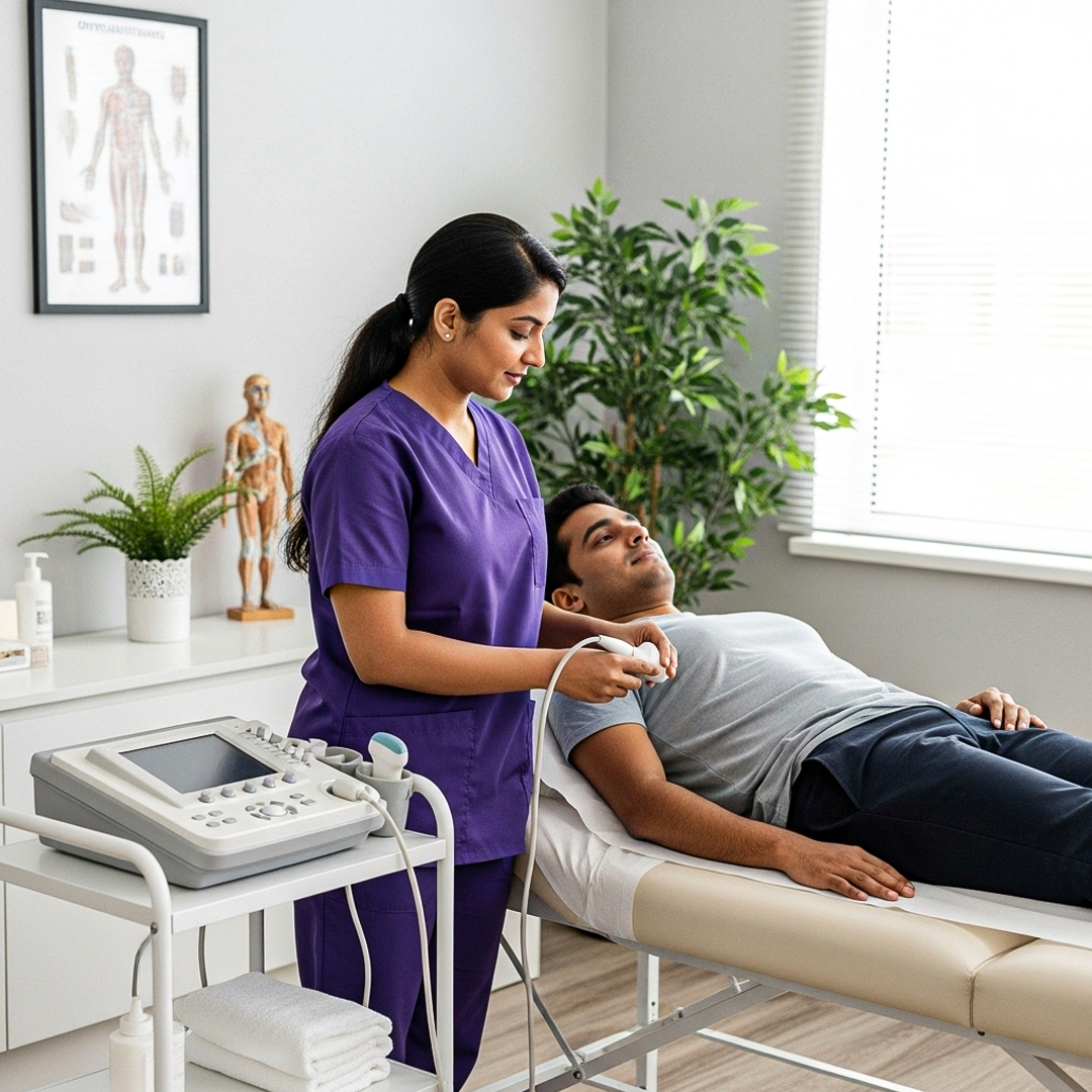 The therapy uses controlled electric or sound waves targeted to the affected area. These signals reduce pain, improve blood circulation, and stimulate natural healing. Core Techniques Include: