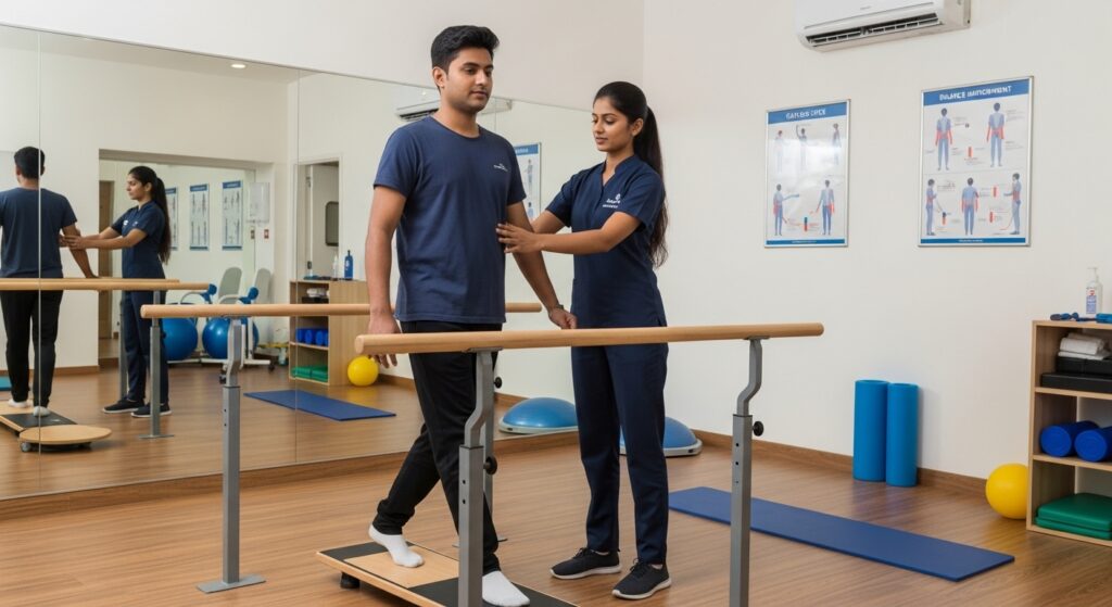 At the Advanced Physiotherapy Clinic, our Gait and Balance Training Program assists individuals in developing walking abilities, coordination, and stability. Our physiotherapists in Bangalore help individuals regain mobility and confidence after an injury, neurological condition, or age-related imbalance. We retrain movement patterns, improve posture, and help prevent falls using evidence-based strategies and equipment.